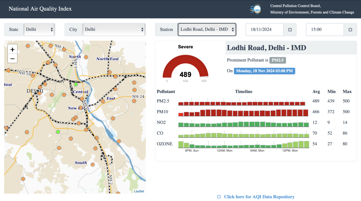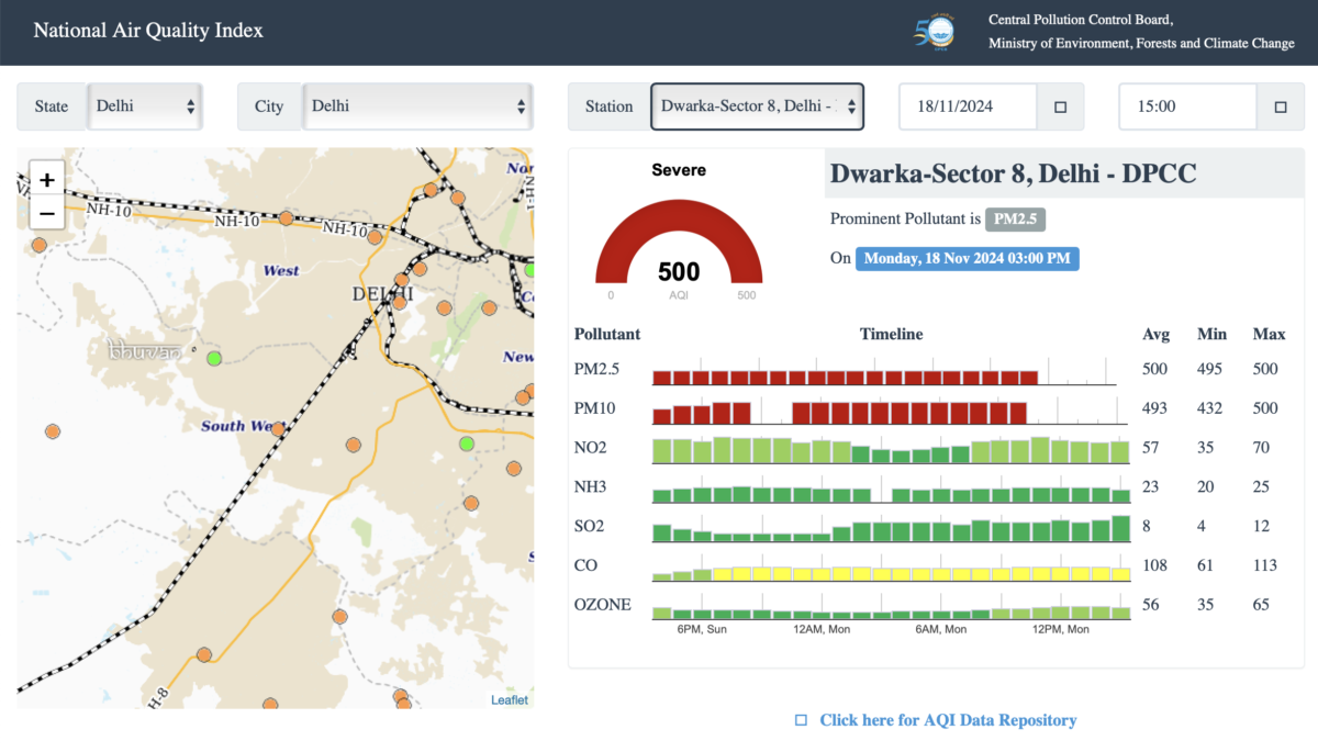 Bengaluru: On November 18, Delhi was once again suffocated by “Severe” air quality. As per the Central Pollution Control's Board (CPCB’s) daily Air Quality Index (AQI) bulletin, Delhi's AQI was 494 as of 4 pm on the day, with the prominent pollutant being fine particulate matter.