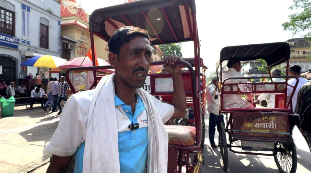“There is so much heat. I get thirsty after a bit when I pull my rickshaw with passengers sitting in it. I step off to drink water. Without that, I can’t pull the passenger,” says Mohammad Aftab.