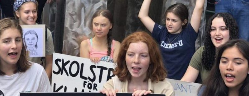 Greta Thunberg joined hundreds of other teenagers on Friday to protest outside the United Nations headquarters against the inadequate action worldwide to curb greenhouse gas emissions.