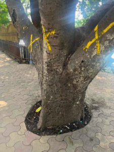 A tree with the yellow ‘X’ marks. Photo: Aaranyak/Facebook.