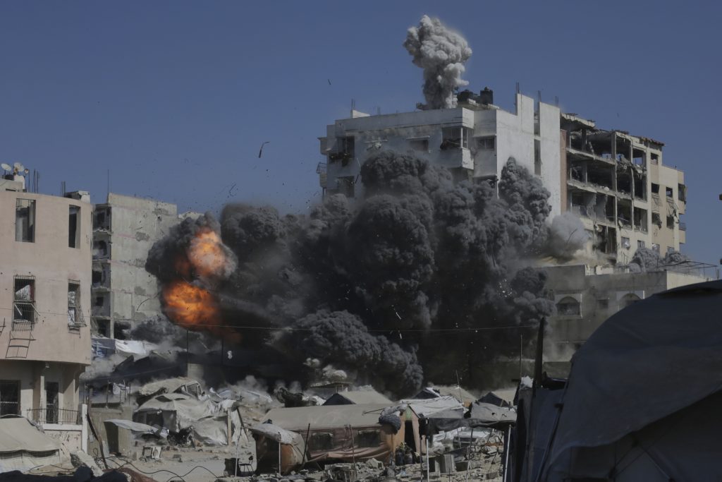 Smoke rises from an Israeli army bombardment in Khan Younis, central Gaza Strip, Thursday, September 11, 2025. Photo: AP/PTI