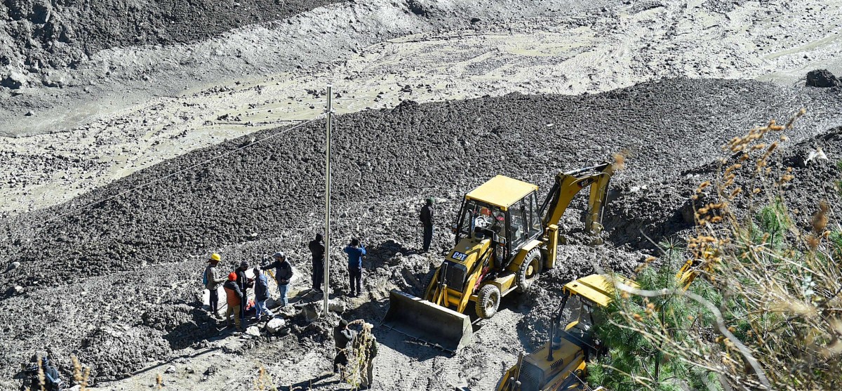 Rescue operations underway near the Rishi Ganga Power Project, a day after a glacier broke off in Joshimath causing a massive flood in the Dhauli Ganga river, in Chamoli district of Uttarakhand, Monday, Feb 8, 2021. Photo: PTI/Arun Sharma