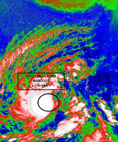 In its bulletin issued on Thursday, the IMD said the cyclonic storm 'Mandous' (pronounced as 'Man-does') over Southwest Bay of Bengal about 500 km off east south east of Karaikal.