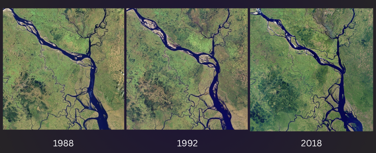 River erosion and its impact over the years in Taranagar village, Murshidabad, West Bengal. Photo: Earth Observatory, NASA
