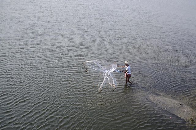 A man casts his fishing net into the Adyar river in Chennai. Photo: Flickr/Pushkar V (CC BY-NC-ND 2.0)