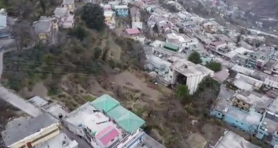 An aerial view of Joshimath, seen in a video screengrab. Photo: Twitter/@AnupamTrivedi26