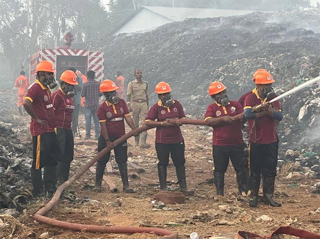 “Five Civil Defence volunteers were sent along with 10 firefighters. We too had to go through all the challenges that fire officials underwent there,” he added. “As the burning waste included plastic, when we sprayed water, extreme heat would come from the waste heap. We were stuck in heat and smoke, amidst heat waves that came from both above and below us. To help officials at the other end, we used to have to walk one or two kilometres in a furnace-like atmosphere, as vehicles could not move through the waste. Mobility was challenging,” he added.