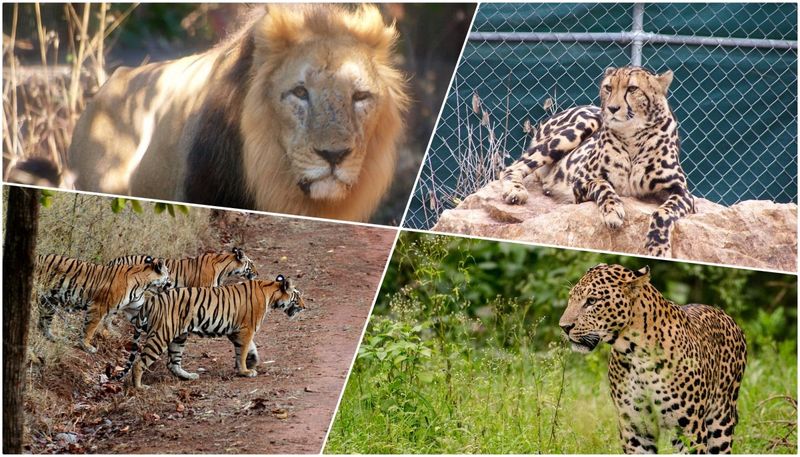 Featured image credits (clockwise from top-left): lion – Shanthanu Bhardwaj/Flickr, CC BY-SA 2.0; cheetah – icameronbps/Wikimedia Commons, CC BY 2.0; leopard – Srikaanth Sekar/Flickr, CC BY-SA 2.0; and tigers – Brian Gratwicke/Flickr, CC BY 2.0.