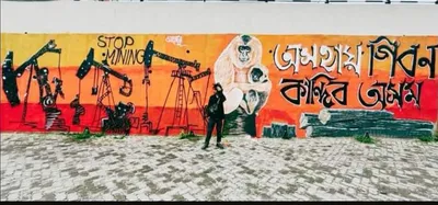 After protests against oil exploration at Hollongapar Gibbon WLS intensified via media coverages and on social media platforms, an image of a mural on a public space of a flyover wall near an important traffic point in Guwahati with a Hoolock Gibbon contemplating about its immediate future was widely shared on Facebook.