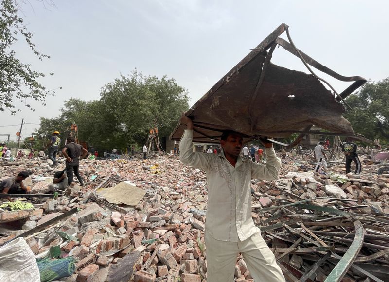 Residents collect their belongings from the rubble at the Madrasi Camp in New Delhi, which was demolished on June 1. Photo: The Wire.