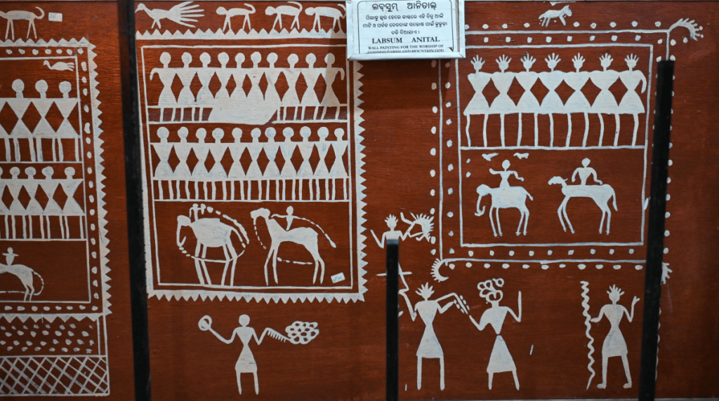 A painting ‘for the worship of goddess earth and mountain god’ displayed in the tribal museum at Koraput, Odisha. Photo: shunya.net.