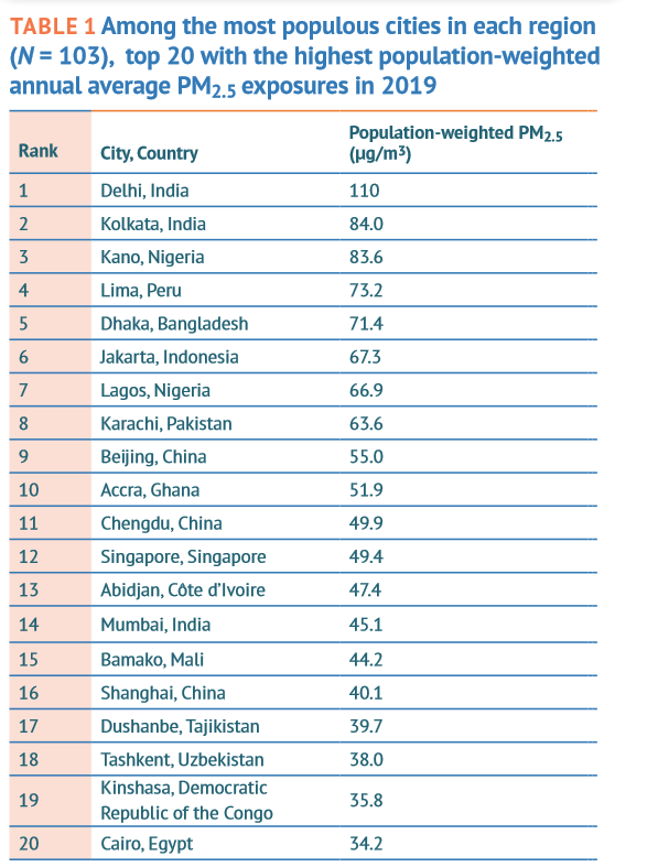 Levels of both these pollutants were taken into account in the latest Air Quality and Health in Cities report published by the State of Global Air, a collaboration between the US-based Health Effects Institute (HEI) and the Institute for Health Metrics and Evaluation’s Global Burden of Disease Project.