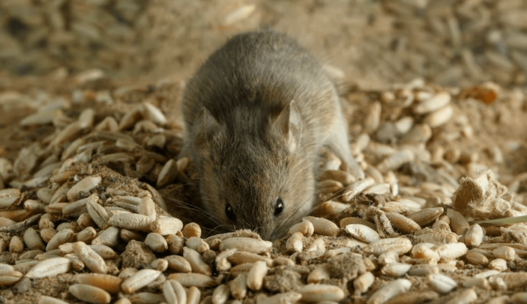 A mouse digs into a heap of apparently contaminated grain. Photo: www.graincentral.com