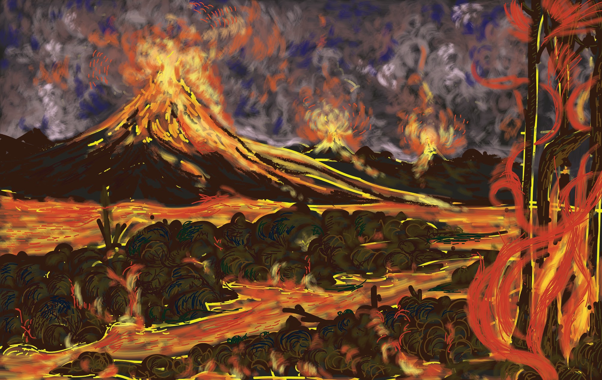 Hot, creeping magma could also set things on fire. Just one tree at the edge of a large forest would have had to have been in contact with this liquid fire for the entire forest to come burning down, with the atmospheric oxygen providing all the fuel needed. Uncontrolled, widespread forest fires would then have added even more aerosols to the atmosphere. The cumulative effect would have been to have had entire ecosystems wiped out in a matter of months.