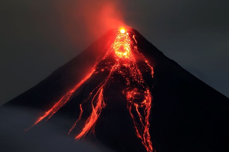 Lava flows from the crater of Mount Mayon volcano during a new eruption in Legazpi city, Albay province, Philippines January 25, 2018. Credit: Reuters/Romeo Ranoco