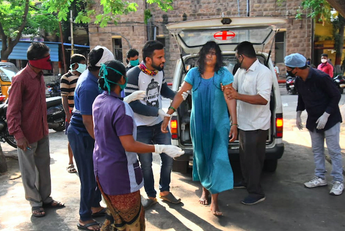 An affected woman being taken for treatment at King George Hospital after a major chemical gas leakage at LG Polymers industry in RR Venkatapuram village, Visakhapatnam. Photo: PTI