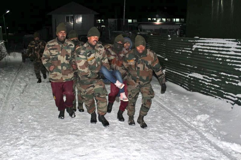 Tourists rescued by Indian army personnel. Credit: Twitter/Kuldeep Dhatwalia