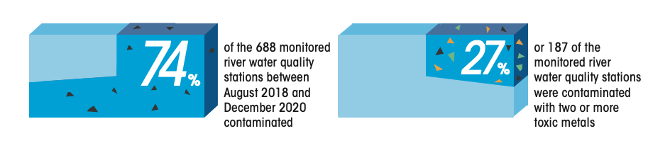 Based on data from the Central Water Commission (from 764 river quality monitoring stations across 28 states) between 2018 and 2020, the report found that three out of every four river monitoring stations in India have alarming levels of heavy toxic metals.