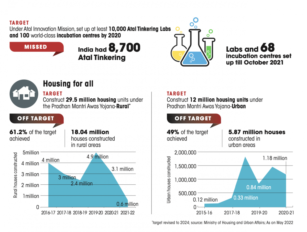 6. Our climate action is off-target. India will not be able to accomplish 15 of the 17 government initiatives (such as 100% source segregation at households, achieving 175 gigawatts of renewable energy and doubling farmers’ income) that have a deadline this year.