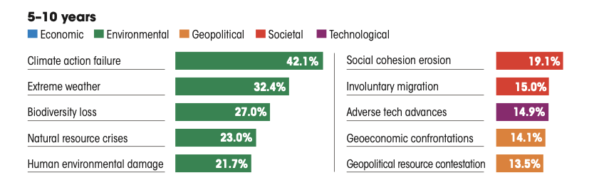 Over the next 5-10 years, climate action failure will be the single biggest global risk. This is based on a survey of over 12,000 global leaders in business, non-profits, governments, academicians and others, conducted by the World Economic Forum Global Risks Perception Survey in 2021-2022.