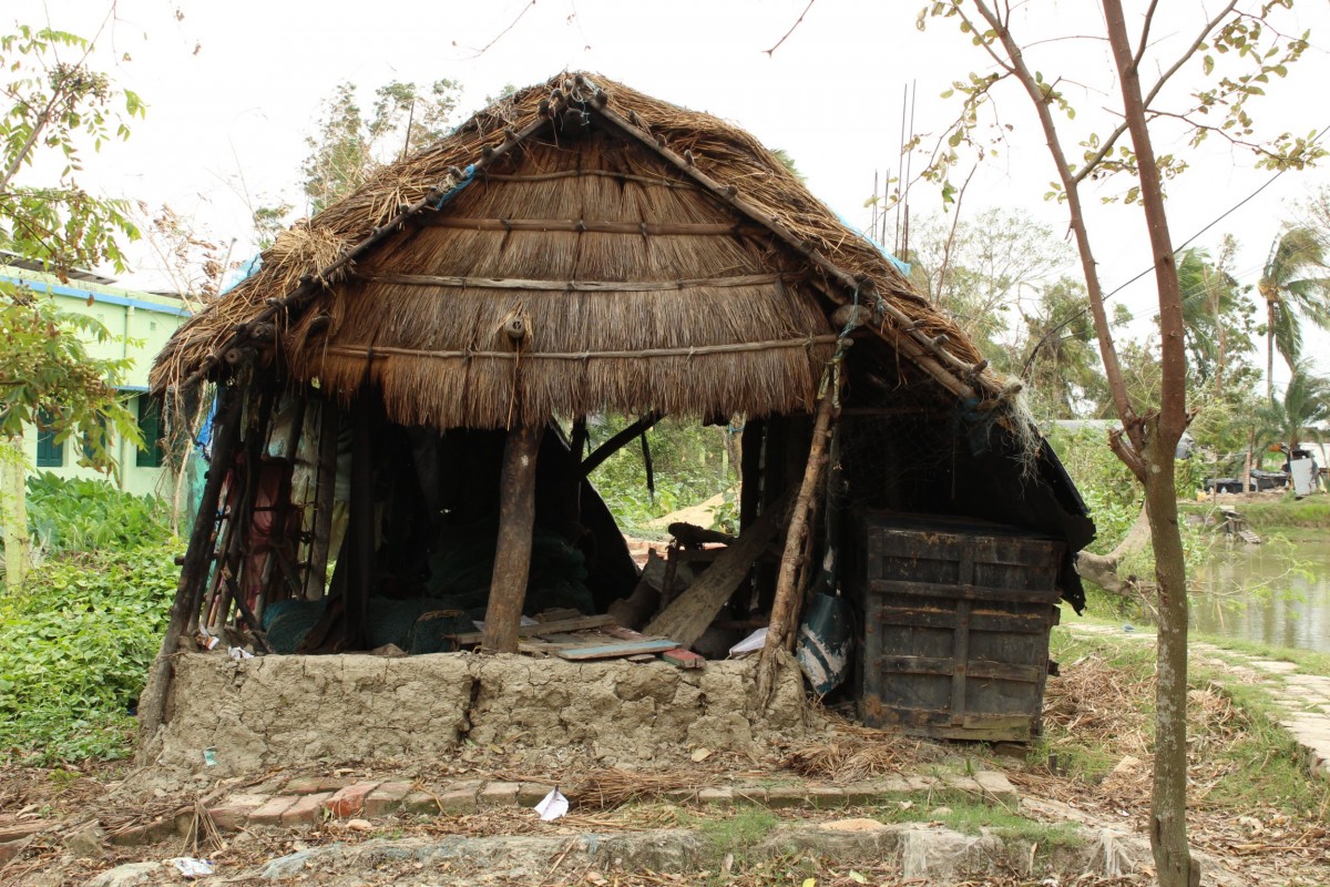 A house whose walls were washed away in Pakhiralaya, Gosaba.