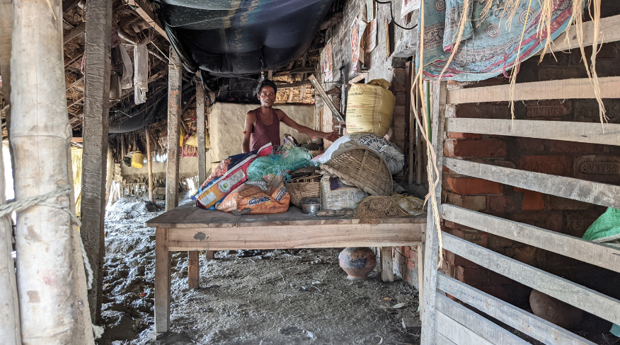 Dinanath Pike’s mud house washed away on May 26 afternoon, since then, he and his family took shelter in a nearby school. Pike had around 1.5 bigha (401 square metres) of farmland and a small pond, which are now underwater.