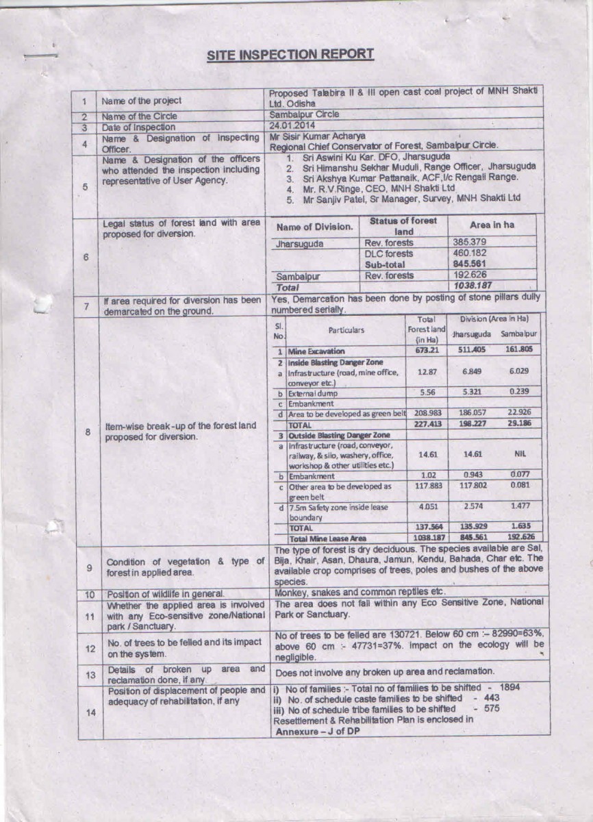 A Site Inspection Report which inspected the area earlier noted in its report that “The impact on the ecology [by way of felling 130721 trees- an estimated number mentioned in the report] will be negligible.”