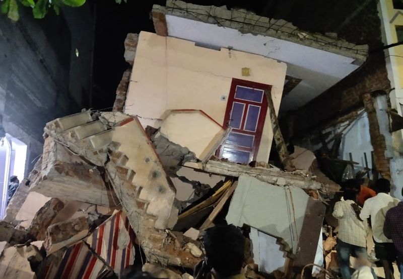 The single-storey building on Chettiveedhi (Chetti Street) suddenly collapsed on Sunday night. Eight persons, including two in the ground floor, were trapped in the debris, at around 10.30 pm.