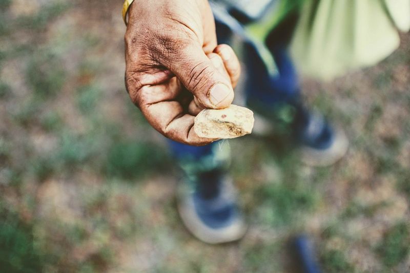 She was pointing to an ivory-tinted flake. It was a prehistoric, handcrafted stone tool wedged like a white chocolate chip on a red mud-cake.