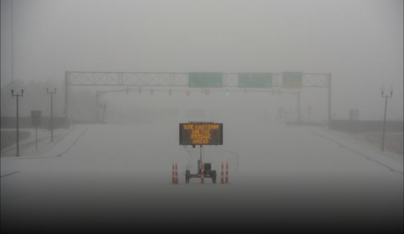 The National Weather Service (NWS) said an Arctic air mass had spread southward, well beyond areas accustomed to freezing weather, with winter storm warnings posted for most of the Gulf Coast region, Oklahoma and Missouri.