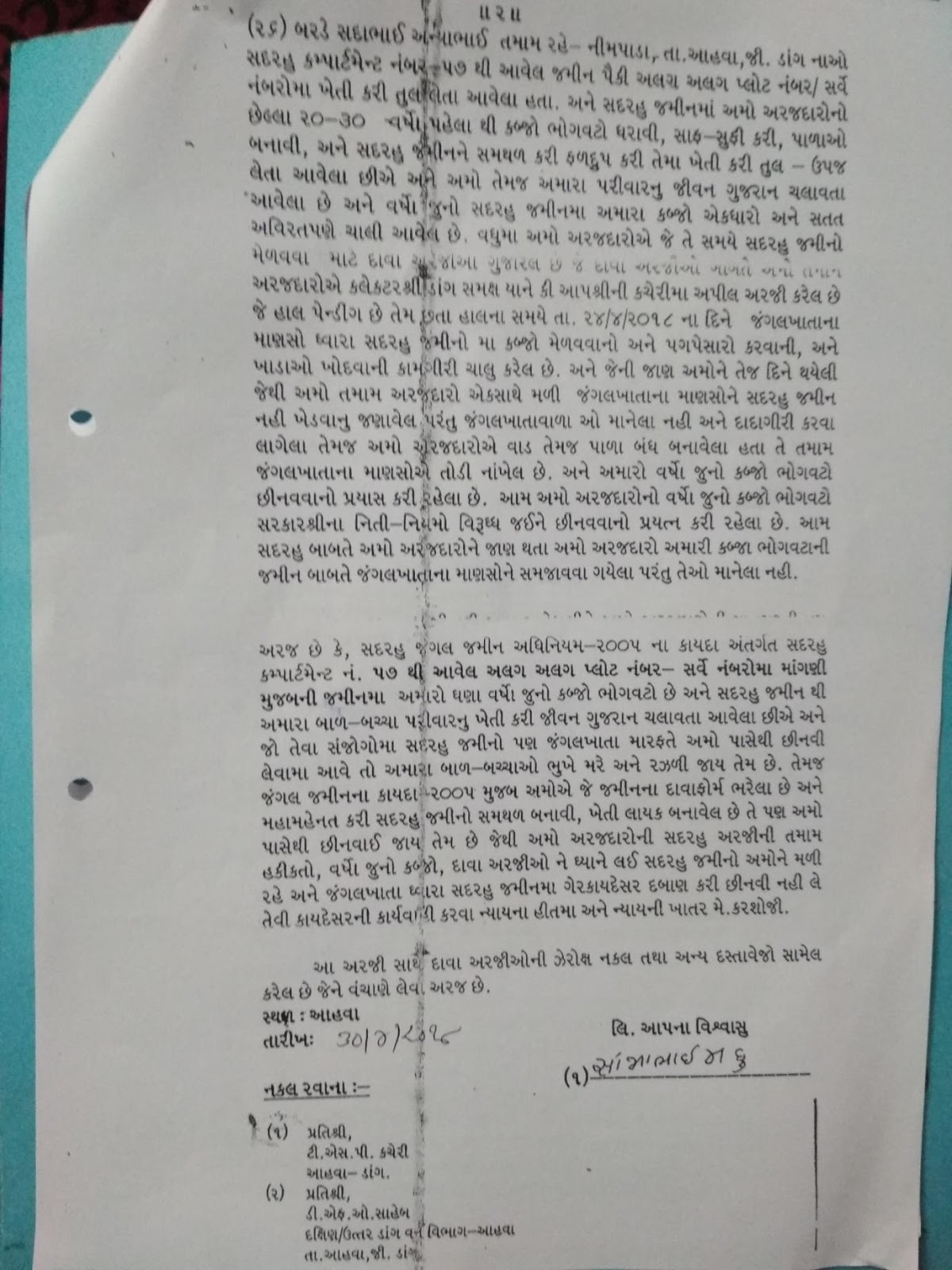 In Dang, a different strategy appears to be at work. The sub-divisional committee had rejected the claims of Somabhai and others in 2016 on the ground that they had not supplied any evidence in support (despite each claimant having filed two pieces of evidence as required). Further, every assessment – such as the mandatory site verification – was performed in the claimant’s absence, casting doubt over the entire process as well as violating the law.