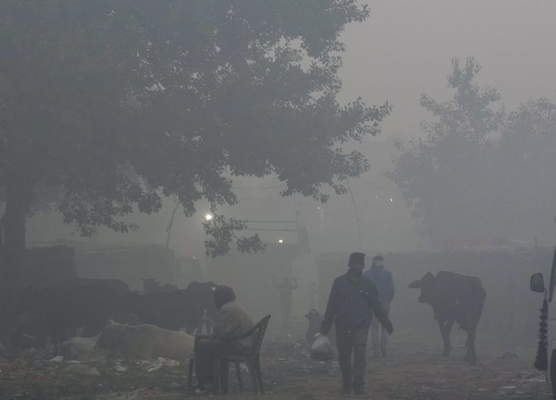 Low visibility along the Yamuna river bank in Delhi due to smog; December 14, 2025. Photo: PTI.