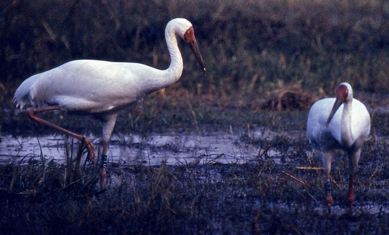 In 1978, a yet unknown sub-population of just 14 Siberian Cranes were discovered by Dr. Ali Ashtiani wintering at Fereydunkenar wetland in Iran where local people trapped wild ducks and geese. This was nothing short of a miracle. In 1985, Dr. Yuri Markin attached a satellite transmitter to a male crane in Iran to discover a new breeding ground of this bird in Siberia. The Iranian sub-population unfortunately followed the same trajectory as the Indian one.