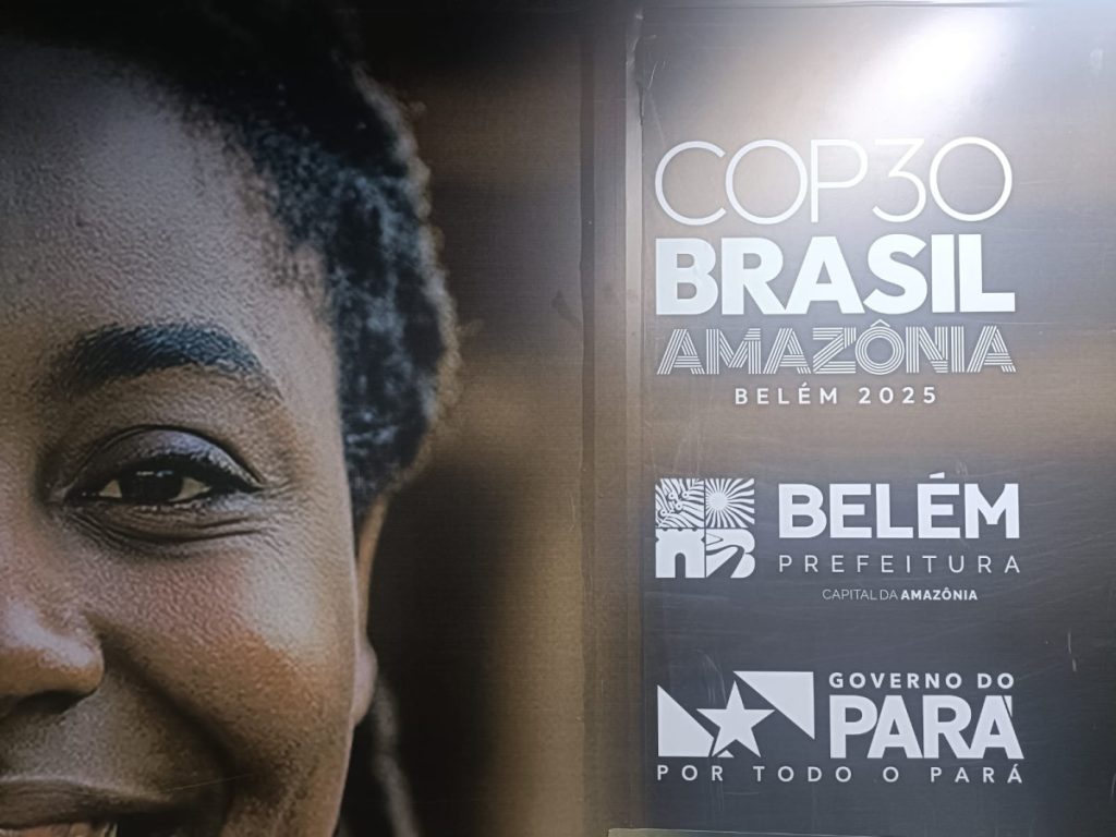 Caption: COP30 ads at the Belem airport in Brazil. Photo: Soumashree Sarkar/The Wire.