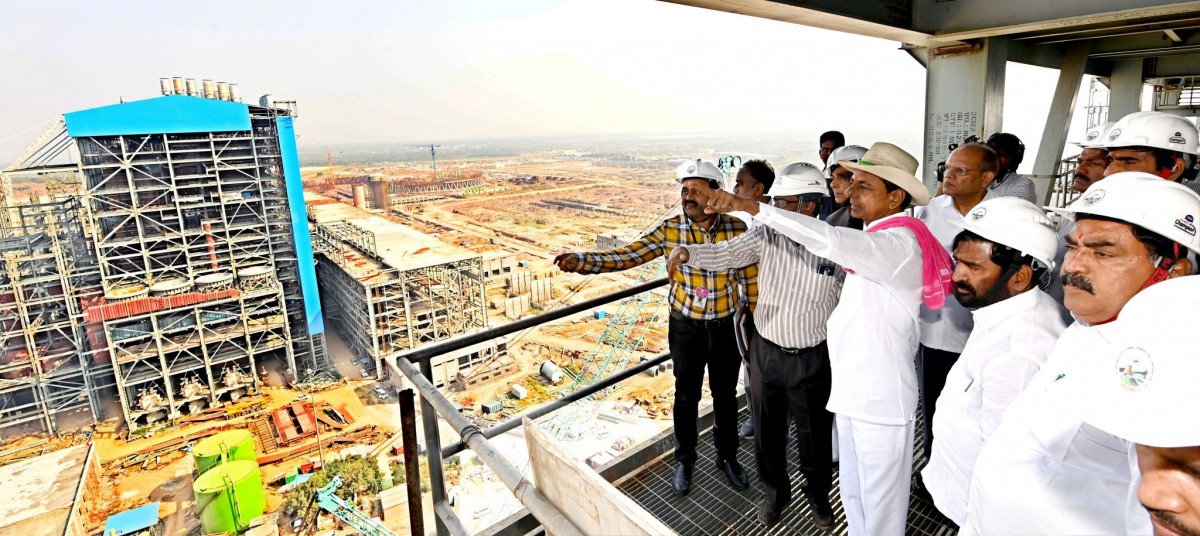 Telangana chief minister KCR inspecting construction at the Yadadri plant. Photo: Telangana CMO