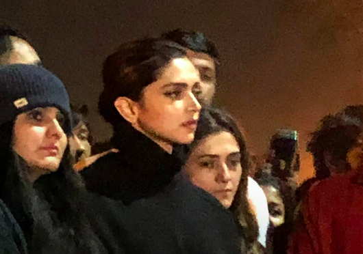 Bollywood actress Deepika Padukone visits JNU campus in solidarity with students and teachers who were attacked on January 5, in New Delhi, January 7, 2020. Photo: PTI