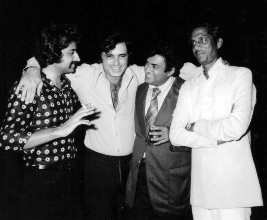Haji Mastan with Sanjeev Kumar, Firoz Khan and Mayur Madhvani. Photo: Bolly.com