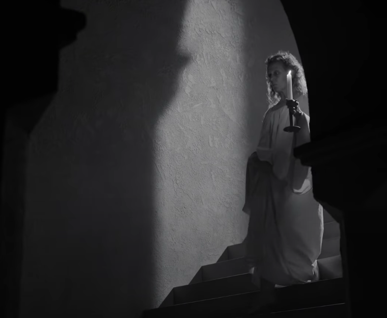 Yet the film isn’t devoid of surprises – whether it’s via framing (characters filmed through tilted structures) or writing (the dialogues retain numerous Shakespearian lines – a rarity in modern cinema), or acting (performers revelling in a distinct theatrical style, delivering soliloquies, at times facing the camera).