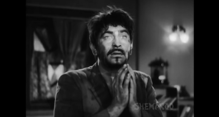 Jagga in a mood for revenge kidnaps Judge Raghunath’s wife (Leela Chitnis); but then, he releases her when he comes to know about her pregnancy. See Raghunath’s conservatism: societal gossip makes him suspect his loyal wife and he eventually expels her from home. Raj was born amid the stormy darkness. He grew up with poverty, a disturbed childhood and social marginalisation; it was simply impossible for him to fulfil his mother’s dream of being educated and becoming a judge. Instead, it was destiny that made him fall into the trap of the vengeful Jagga. It was not easy to come out of the trap. Instead, circumstances led him to kill Jagga, and even make an attempt to kill Raghunath. In court, when Raj speaks of the dirt in the social system that destroys the life of the poor and transforms good human possibilities into criminals, we hear something like a Marxian discourse.