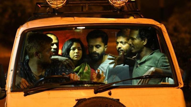 Sasidharan’s film takes many elements from road movies, from suspense thrillers and from black comedies. We never get to know where the couple comes from or why they are in flight. Except their names, we know nothing about them. The man is called Kabeer and the woman, Durga. We are not told if they are running away from something, but throughout the course of the film, the other characters assume things about them when they hear their names. Their tones of contempt, the way they stereotype them, the intimidation and the bullying are unique studies of the endemic violence of our society.