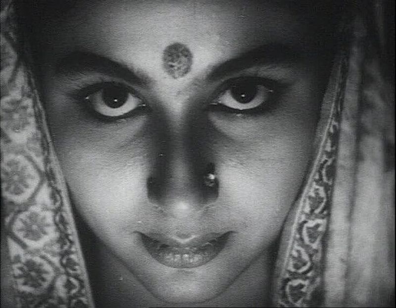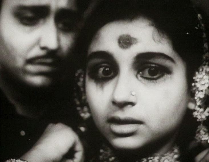 Her strikingly beautiful face has been transformed by the look of dark terror in her eyes, and smudges of mascara. Photo: Satyajit Ray Productions