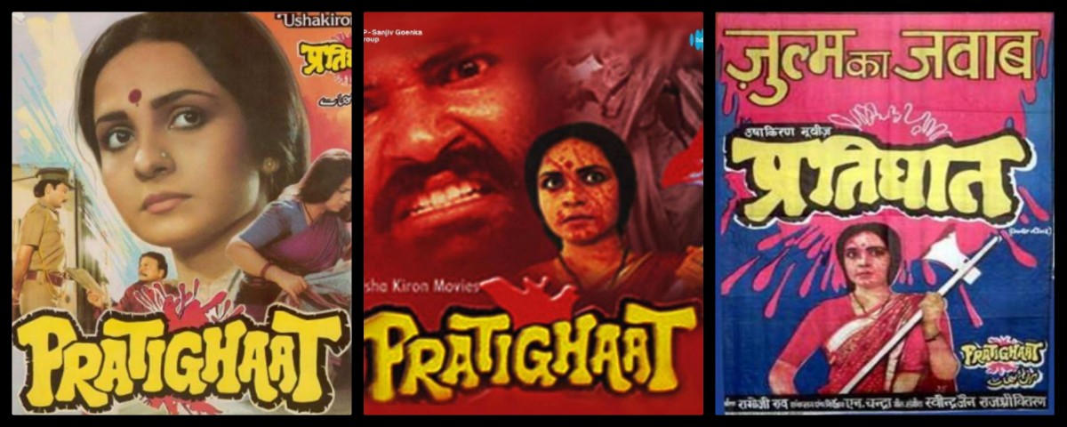 Various versions of posters of N. Chandra’s 'Pratighaat' (1987).