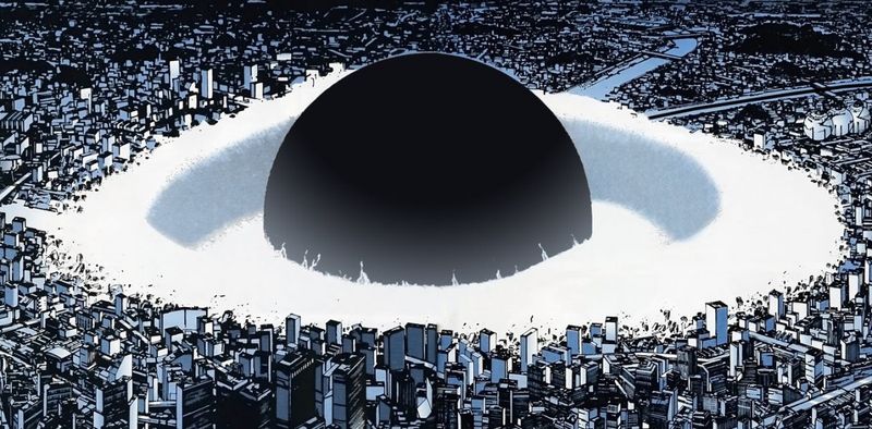 At the end of Katsuhiro Otomo’s dystopian Japanese anime film Akira, a throbbing, white mass begins to envelop Neo-Tokyo. Eventually, its swirling winds engulf the metropolis, swallowing it whole and leaving a skeleton of a city in its wake.