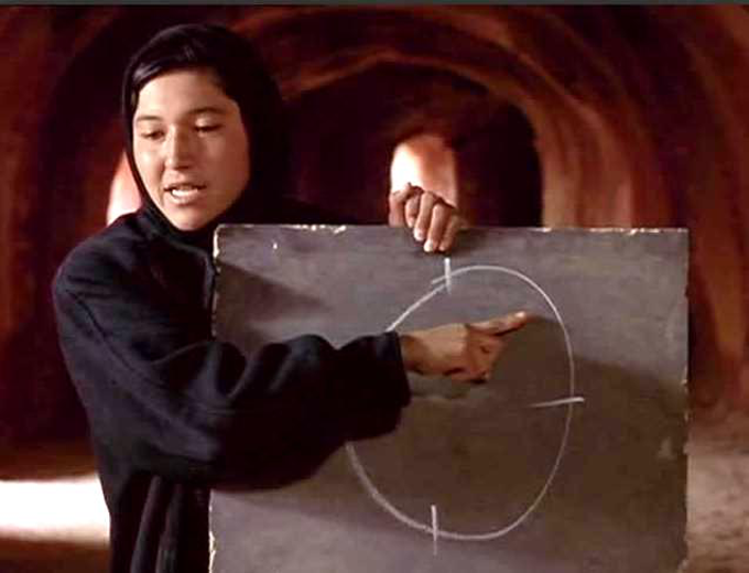 Samira Makhmalbaf’s is one of the four segments that foreground the theme of the carnage, but site it in different geographies. A young woman shepherds her class of impoverished Afghan refugee children in Iran into a dank, bare classroom and tries telling them of the catastrophe in New York and the many dead. Nothing registers with these kids, however, for they can only relate to the horrors they have known themselves. In the end, the exasperated teacher makes her class stand in mourning for the distant dead beside a smoking, soaring brick-kiln chimney -- the nearest thing to the burning Twin Towers she can show to the kids. Meanwhile, the kids go on among themselves about God and his inscrutable ways, drawing upon their own dark life-experiences.