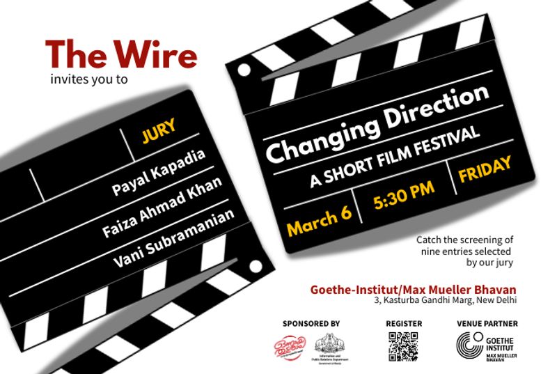 In continuation of the series of events held to mark and celebrate 10 years since The Wire was launched, we will be hosting the 'Changing Direction' Short Film Festival on March 6 at 5:30 PM in New Delhi. The Goethe-Institut/Max Mueller Bhavan is our venue partner, and the festival is sponsored by the Information and Public Relations Department, Government of Kerala.