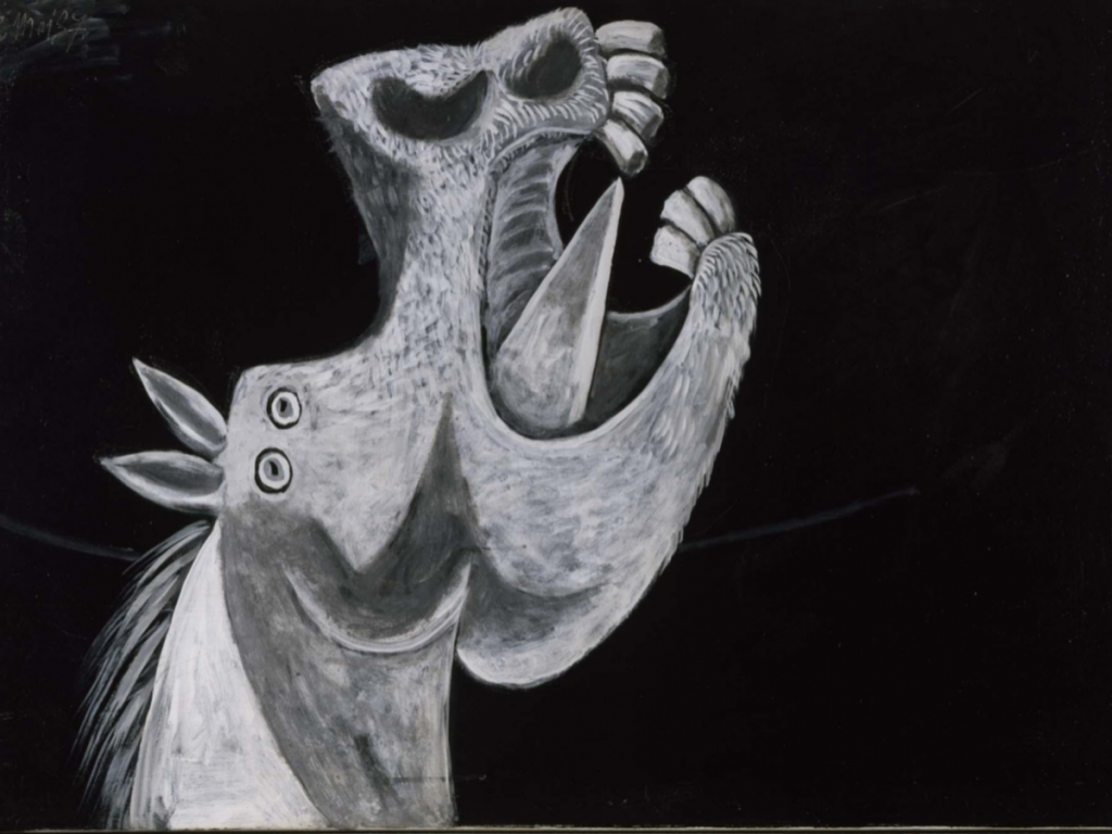 Picasso’s preparatory drawing becomes Resnais’s cry of anguish.