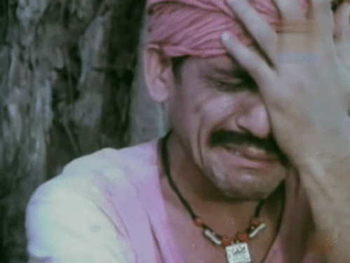 Sadgati is all of 50 minutes long, but that it manages to pack so much power into those 50 minutes is due to the unrelenting intensity of its tone. At times, this intensity is so overpowering that you catch yourself involuntarily looking away from the screen. For example, when Dukhi hacks away apoplectically at that monstrous block of wood without making the slightest difference to its hulk, his face contorted in rage and utter desperation. Or when a devastated Jhuria, sobbing loudly, inconsolably, pounds with her bare hands on the Brahmin’s door over and over again, demanding answers from Ghasiram, who cowers inside, even as thick rain falls steadily from a sombre sky.