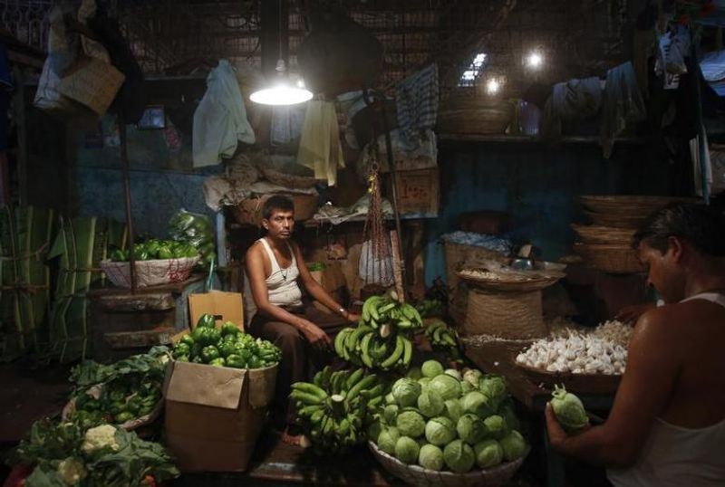 A vendor waits for customers at his stall at a wholesale food market in Mumbai October 14, 2013 file photo. Credit: Reuters/Danish Siddiqui