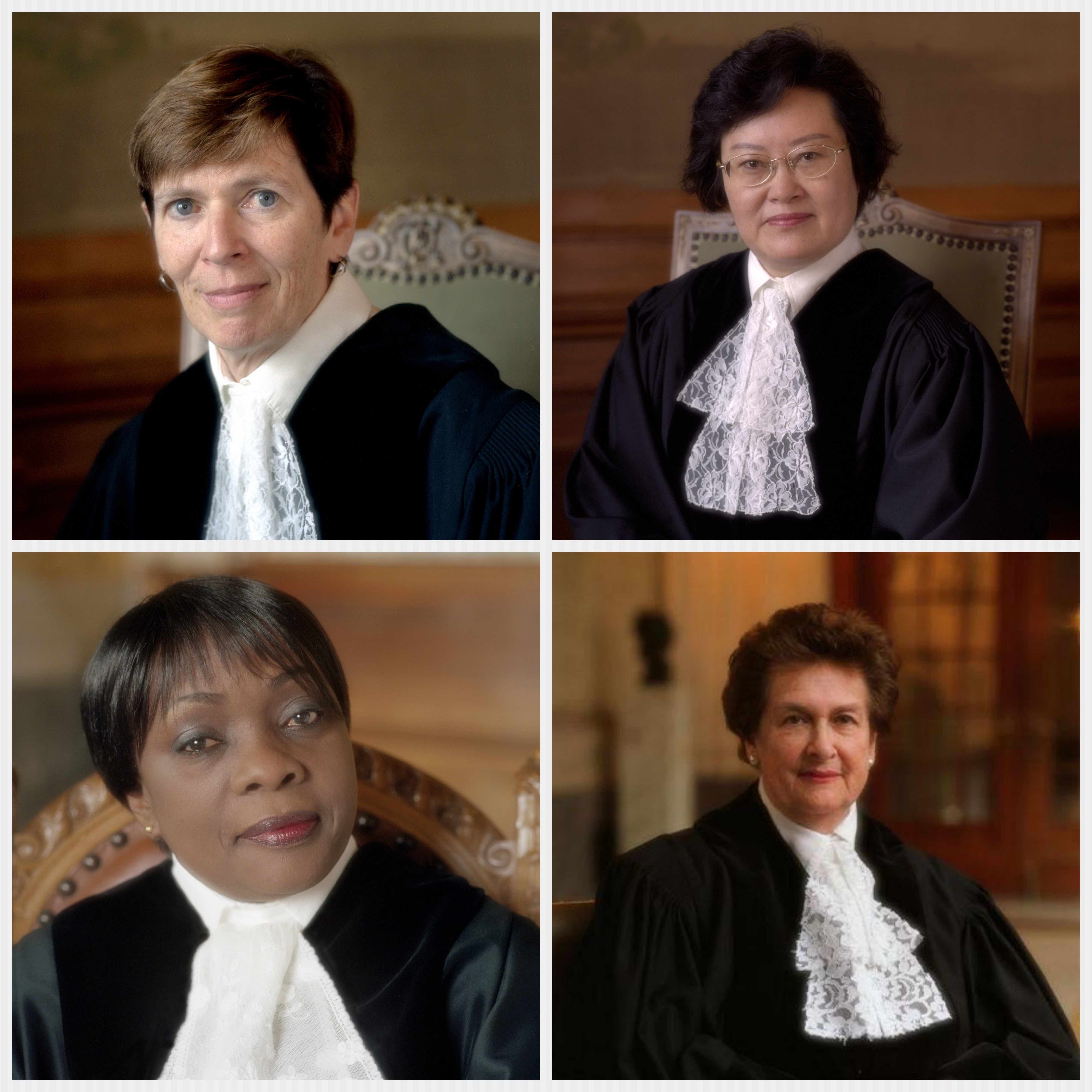 In the nearly 80-year history of the International Court of Justice, there have only been four women judges: Rosalyn Higgins (bottom right), Julia Sebutinde (bottom left), Joan Donoghue (top left) and Xue Hanqin (top right). Sebitinde, Donohue and Xue are on the current bench. Credit: ICJ