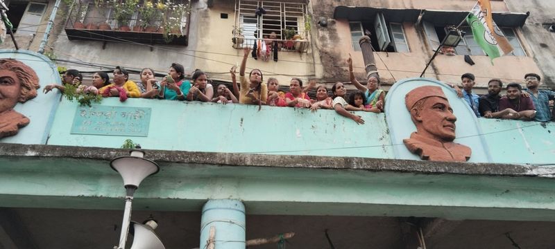 Mind you, this group is the core voters of TMC. These are women who have to work from dawn to dusk – just to survive. They are the prime beneficiaries of the TMC government’s pet project – Lakshmir Bhandar (purse of Lakshmi) that provides them with Rs 1,000 every month (Rs 1,200 for women of the Scheduled Caste and Scheduled Tribe communities). The influence of TMC in those areas could be seen from the party's flags hanging from the buildings behind those women. Near Khanna crossing, there is an old building waiting to collapse. On its first floor stood some women leaning over the rusty railing, jostling for space and shouting slogans, throwing fists in the air. They had so much energy that I feared the balcony would fall at any moment. Interestingly, a triangular flag with angry Hanuman painted on it, was hanging from a rod.